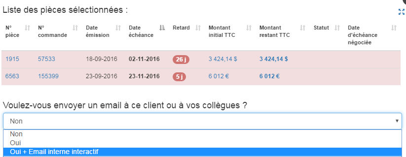 - L'email envoyé après la qualification des pièces avec un statut peut être défini comme interne interactif :